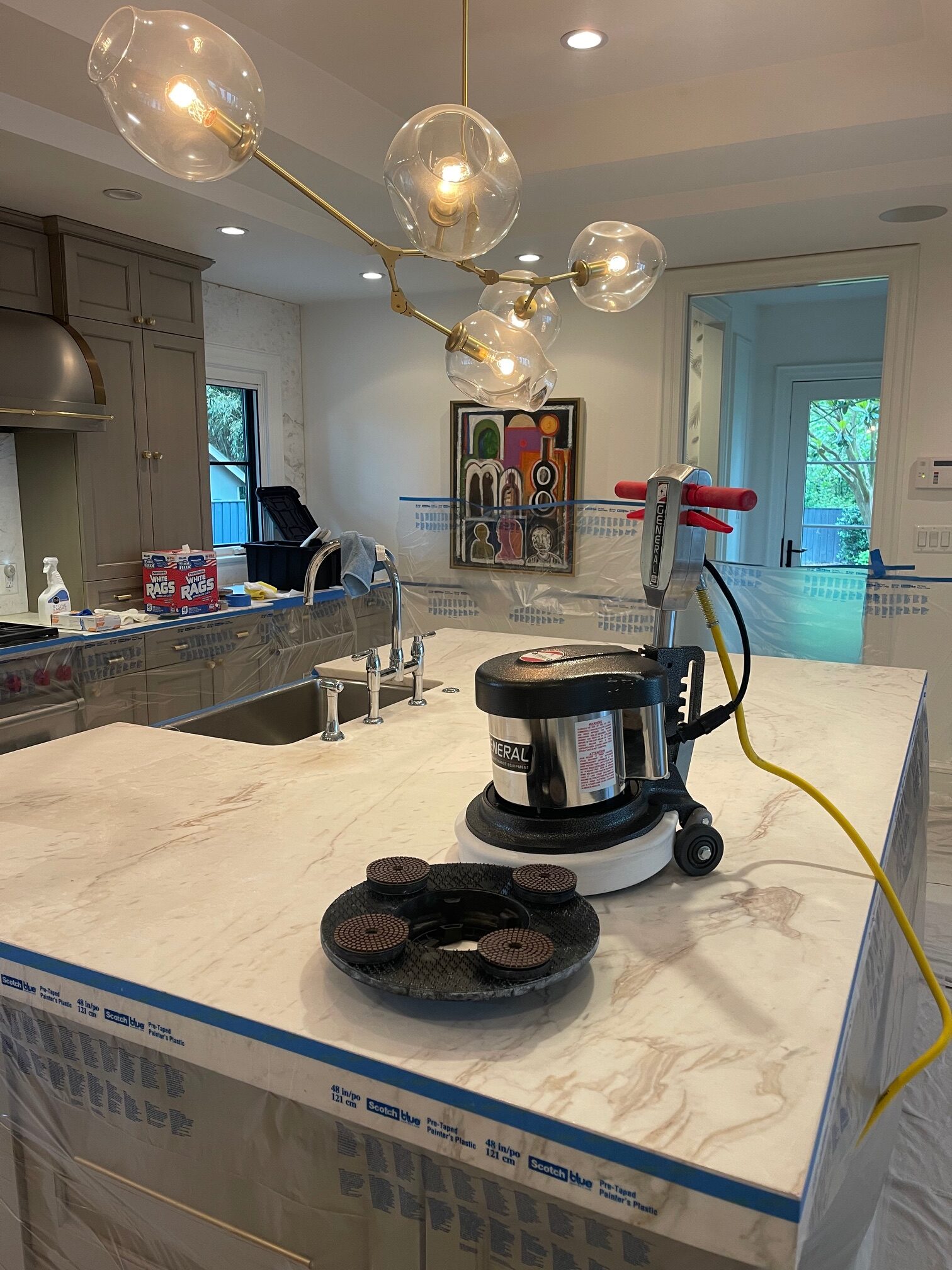 NOVA Stone Care professionals use diamond abrasives or polishing pads with progressively finer grits to grind and hone the surface. Coarser grits remove existing polish or gloss and smooth the surface, eliminating scratches, etches, and irregularities.