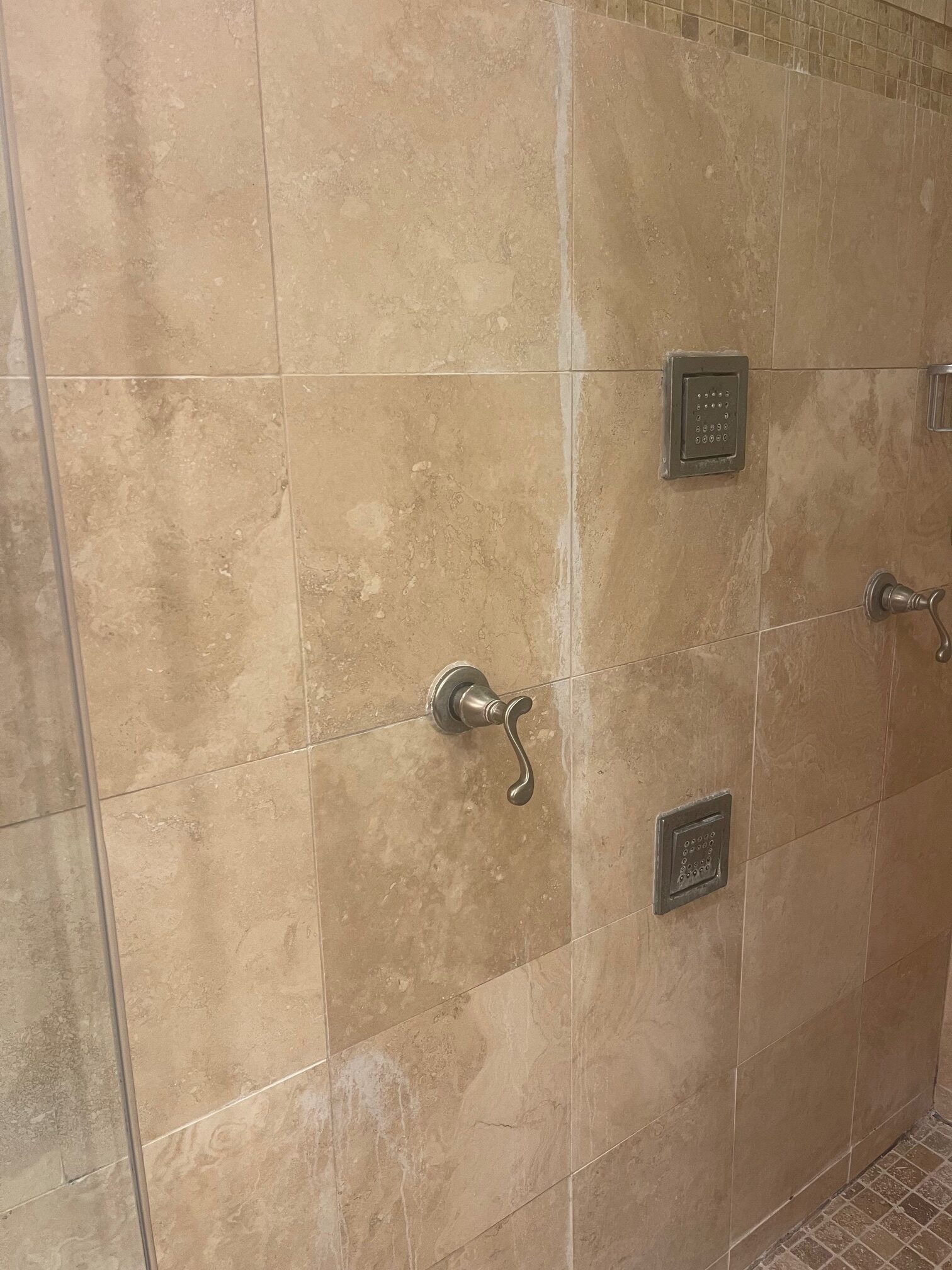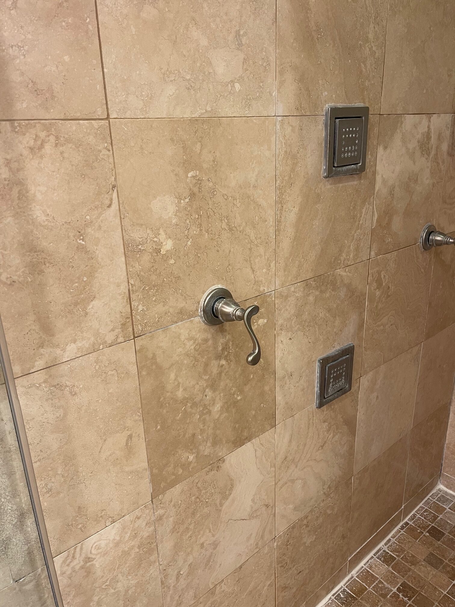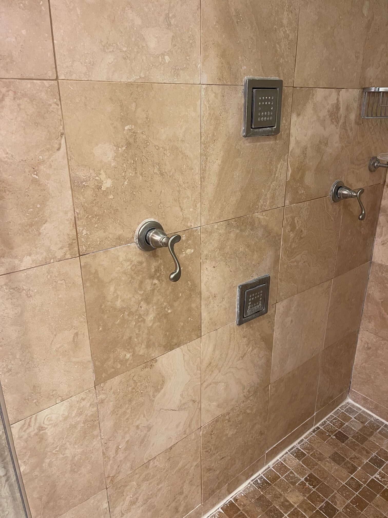 The result? A travertine shower that looked brand new, with no trace of the deep etching. The transformation and added durability from the sealing process thrilled the client.
