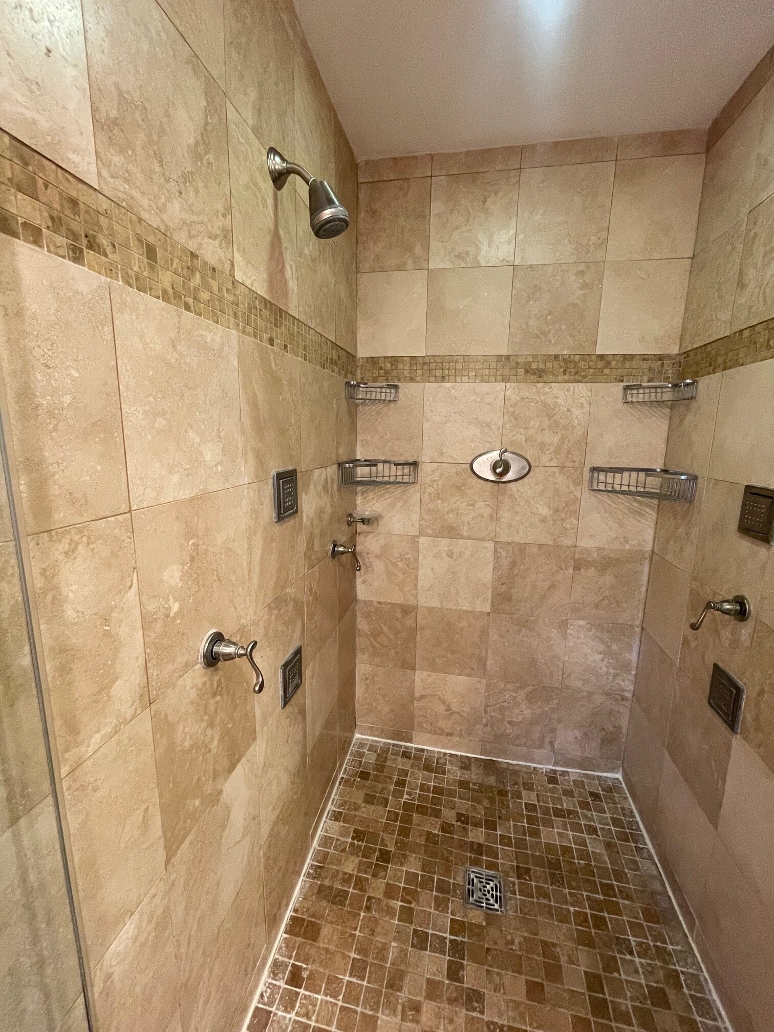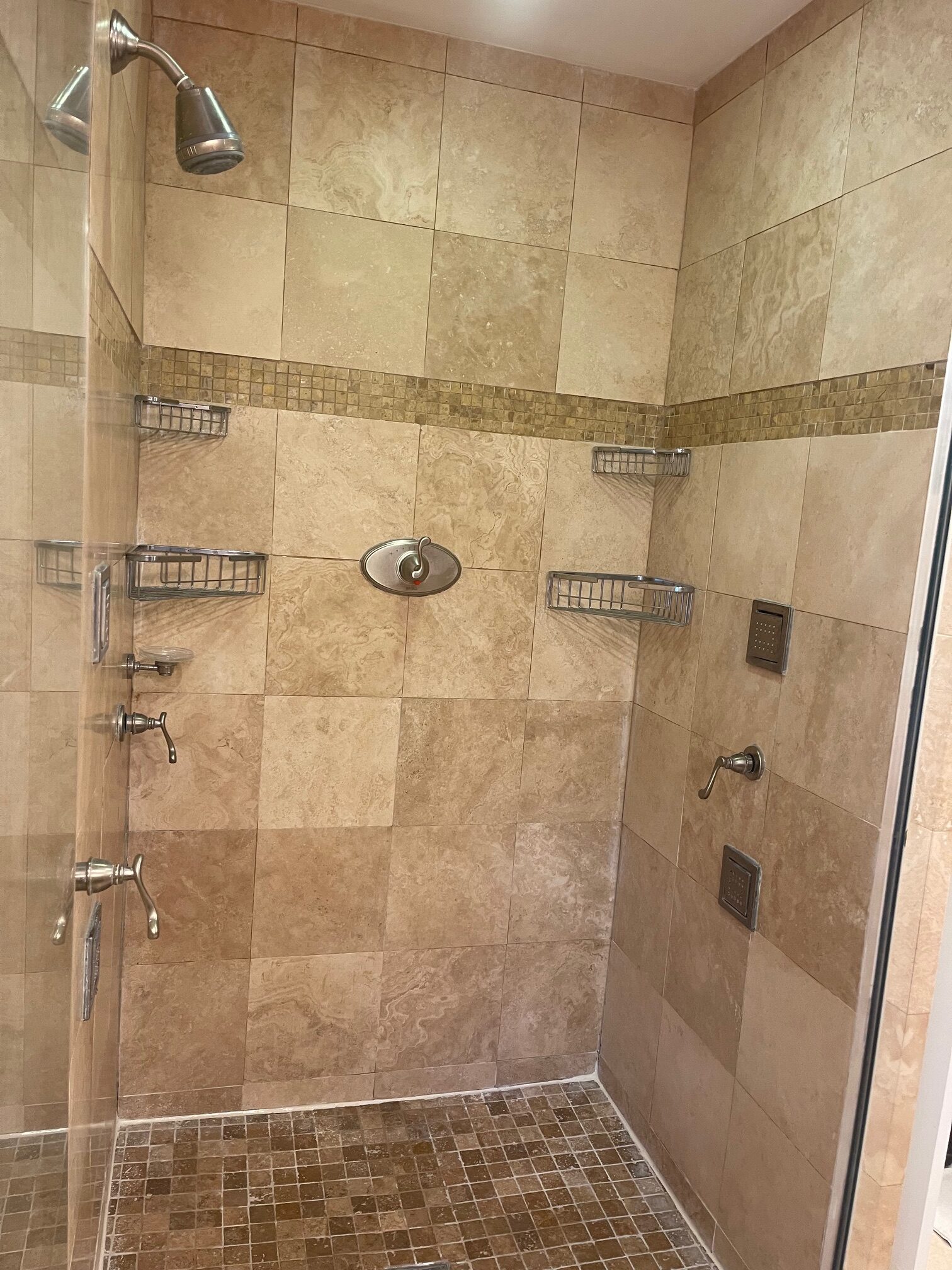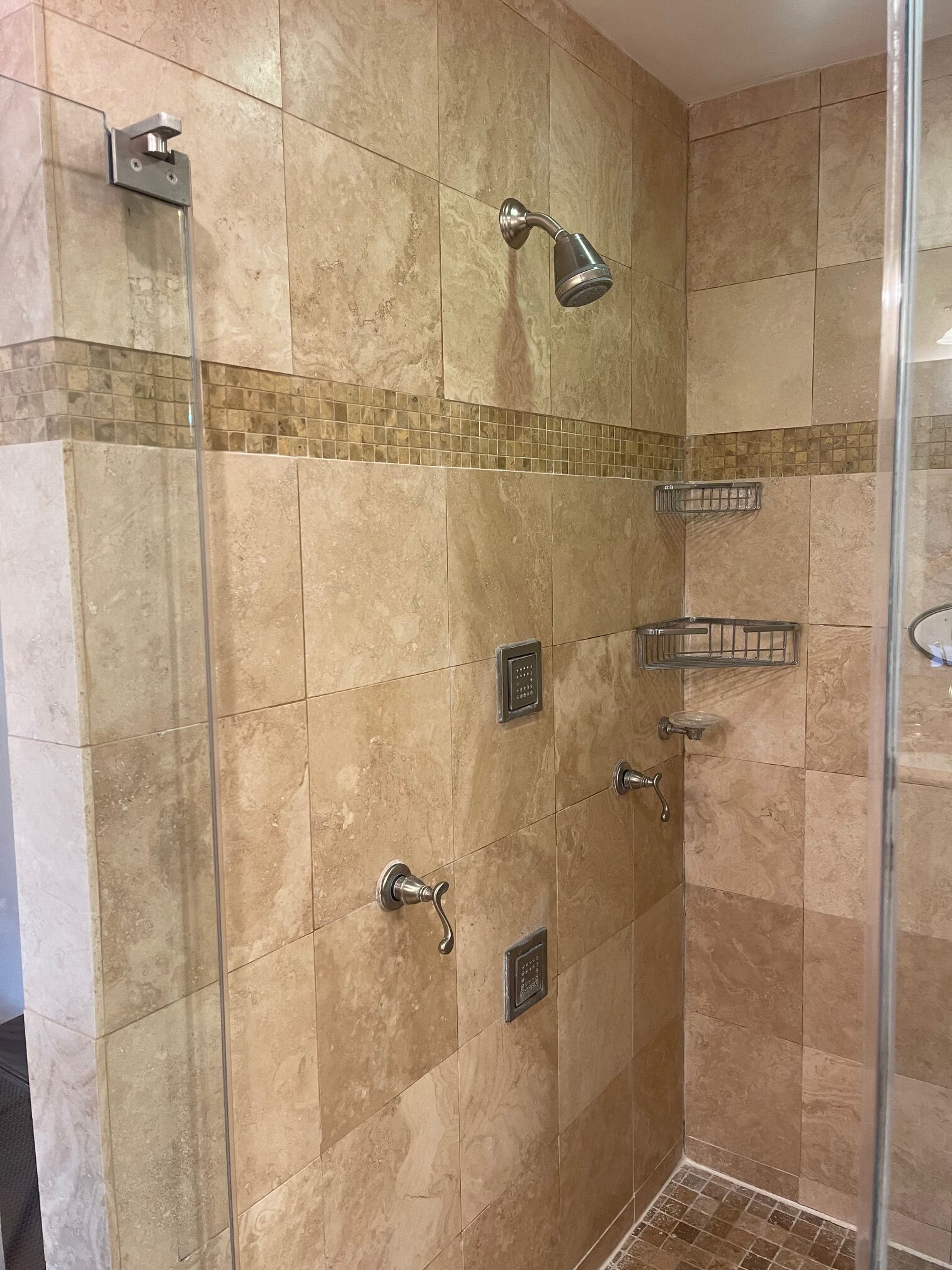 The result? A travertine shower that looked brand new, with no trace of the deep etching. The transformation and added durability from the sealing process thrilled the client.